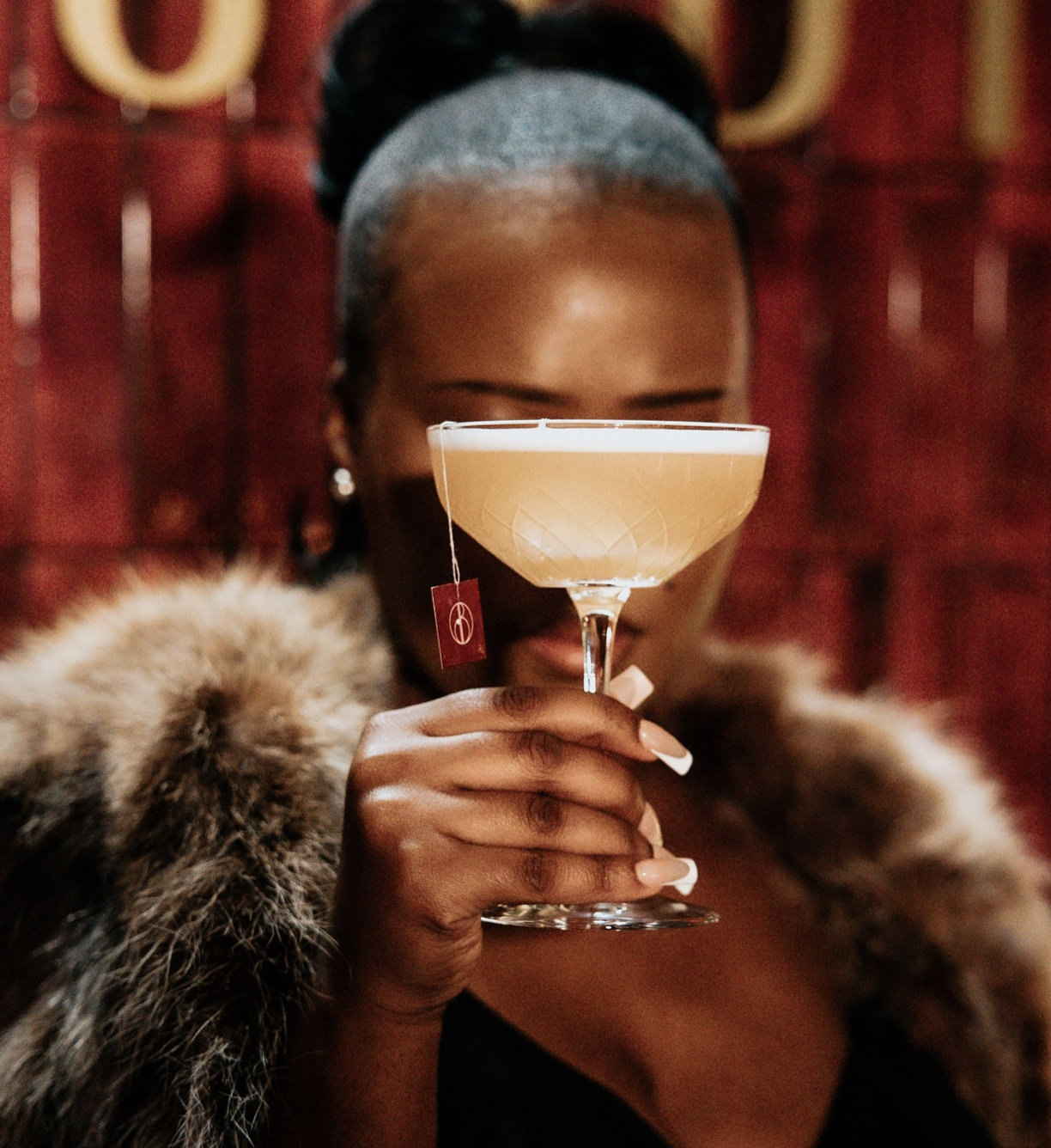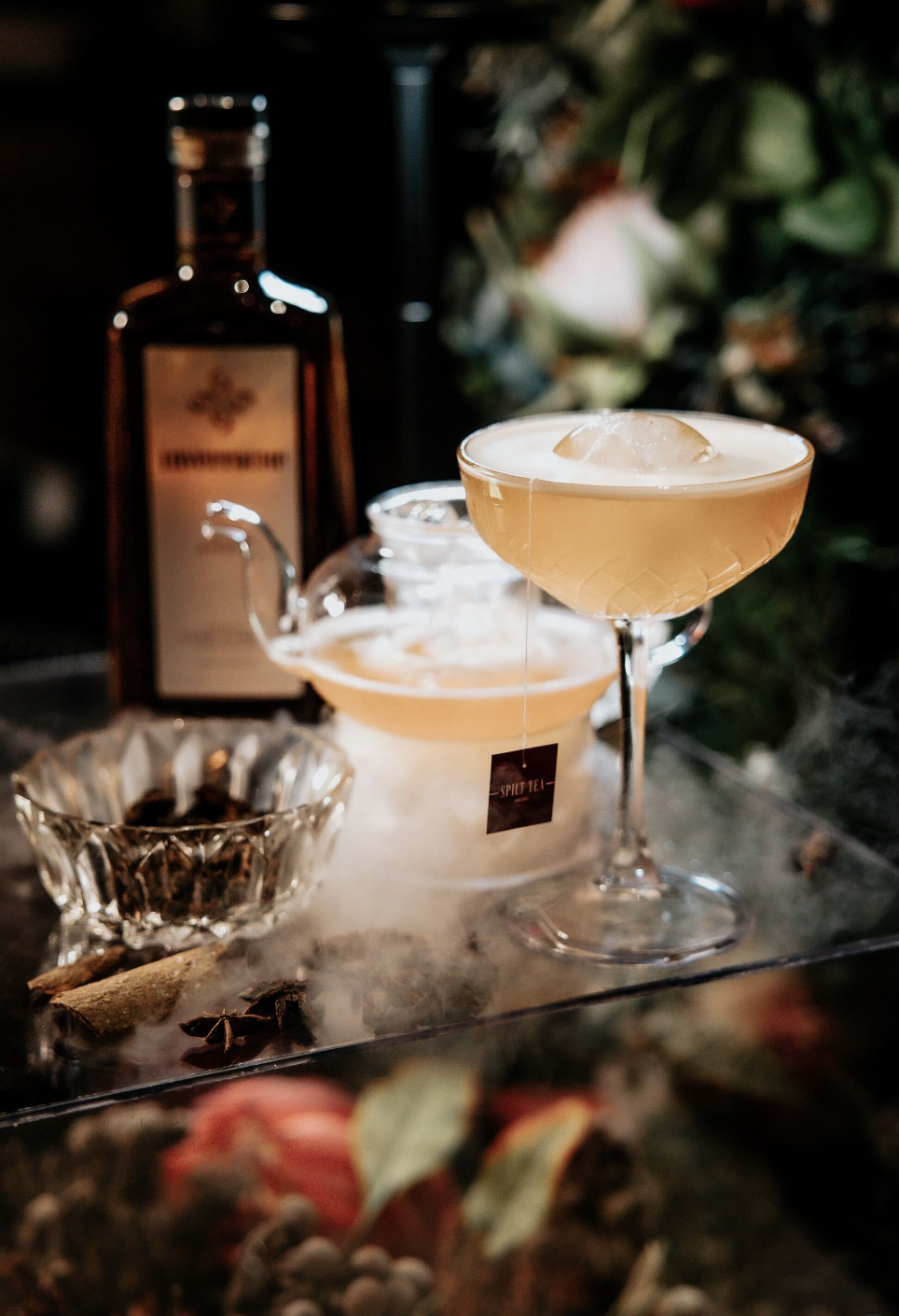 The cocktail launch became theatre. The mixologist walked guests through the story of each ingredient before serving the drink individually — each glass finished with the custom tea tag detail that tied the entire narrative together.