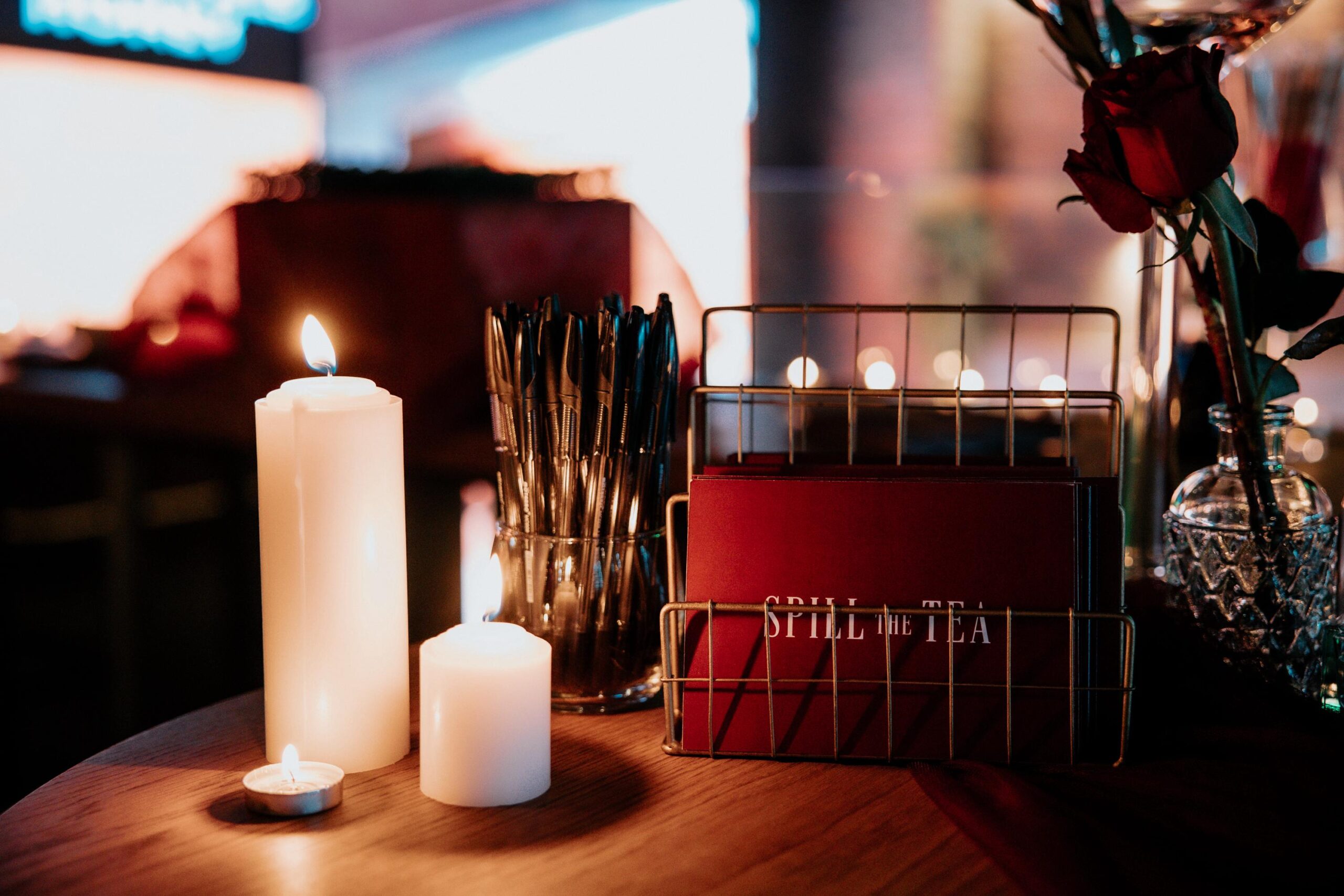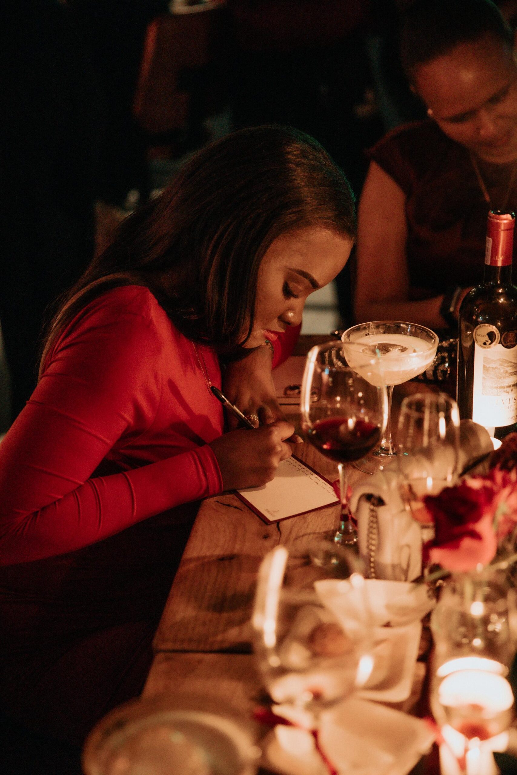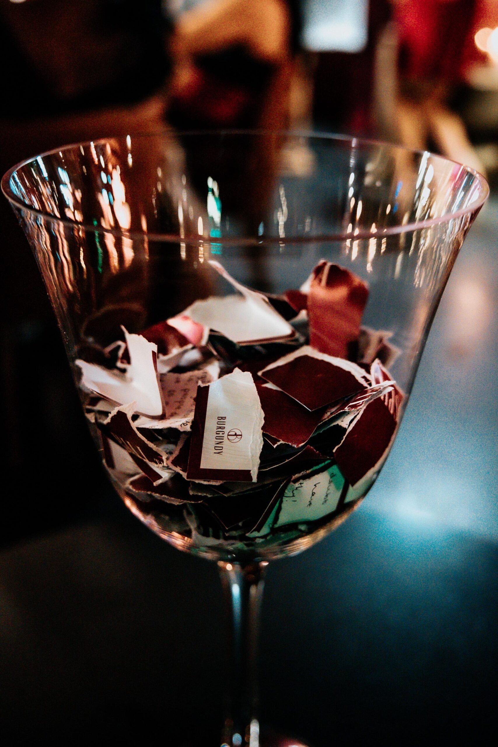 We also designed and facilitated the core “Spill the Tea” activity. Each guest wrote down her confession — her truth — and one by one approached the front, tearing her card to shreds and placing it into a vase. A collective moment of release. A visual symbol of leaving it in 2025.