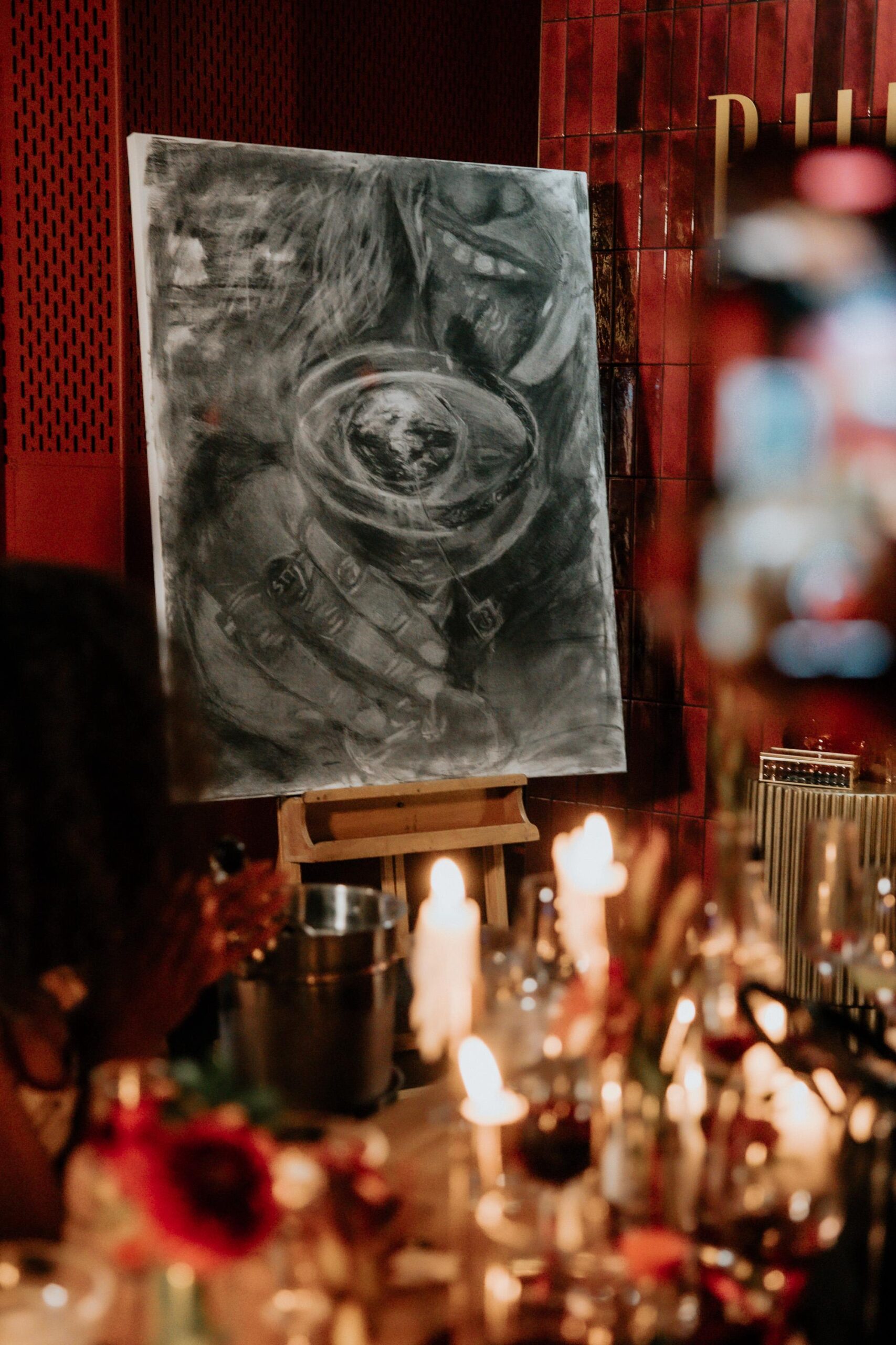 Live charcoal artist Ashleigh Francis (Soochi) created a performative artwork of a woman sipping the signature cocktail — a striking visual centrepiece that captured the spirit of the evening in real time.