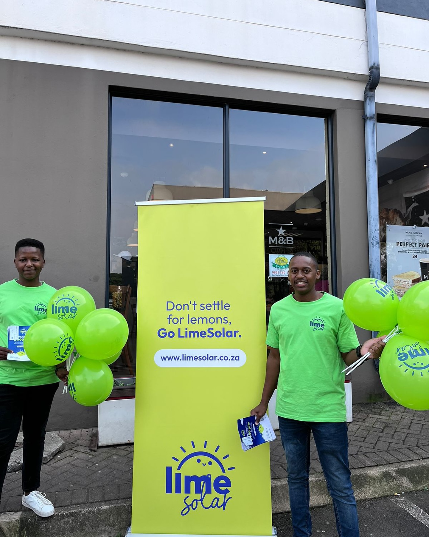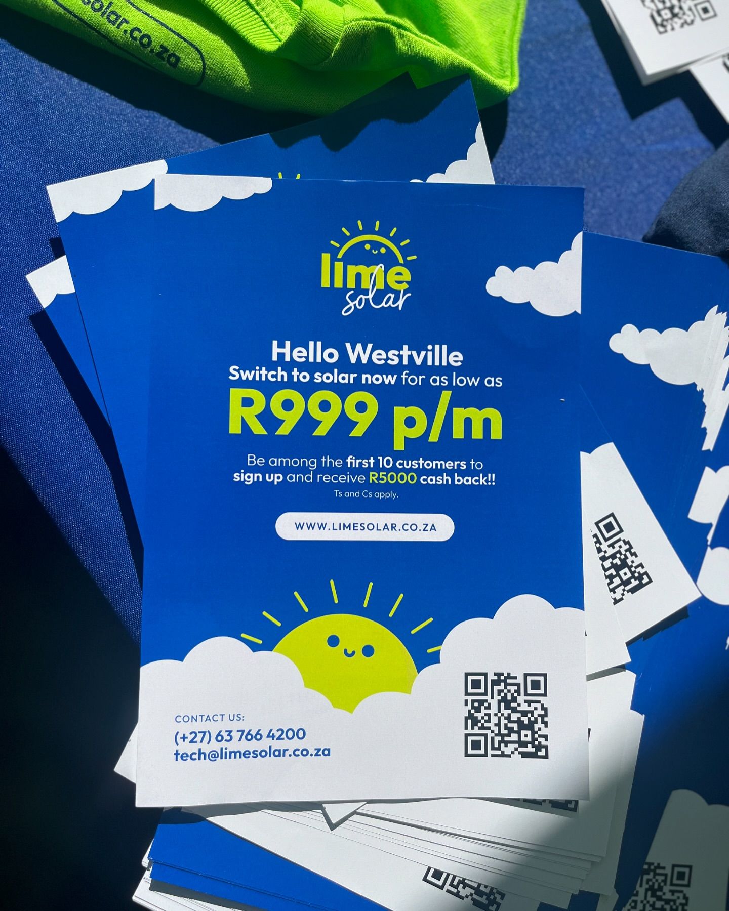 - Street Pole Ads and Printed Promotional Materials: We kicked off with street pole ads across high-traffic areas in Westville. Flyers, brochures, branded pens, balloons, and cups were distributed by our promoter team, who donned LimeSolar-branded T-shirts, ensuring a cohesive and visible presence throughout the campaign.